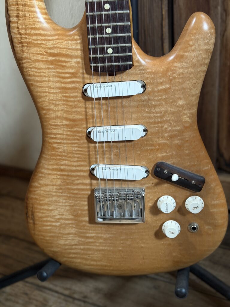 エレキギターとエレキベースのボディーにする事に決め、中古のネックを探し、ピックアップやポッドなどの部品を取り寄せ、知り合いの電気屋さんに配線や取り付けをお願いし、完成にこぎつけました。